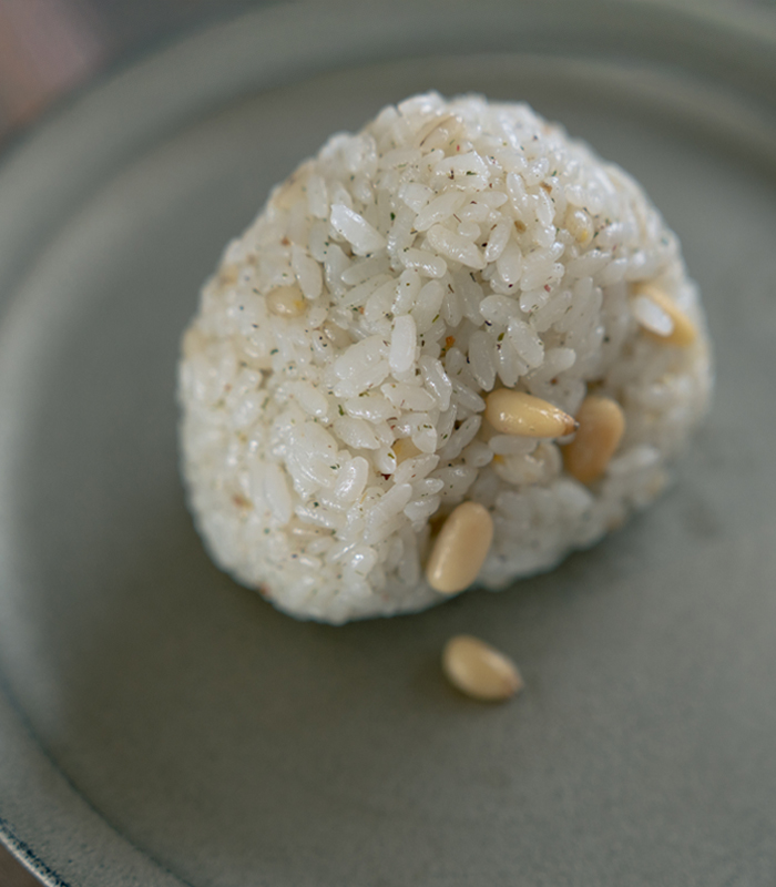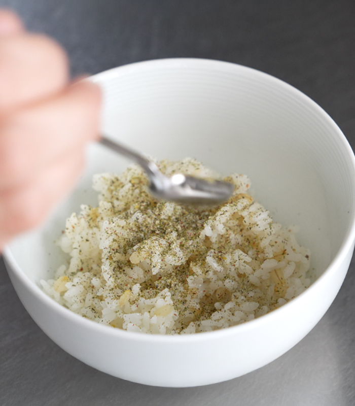 • ハーブソルト「カリアリフラミンゴ」をおむすびにかけている