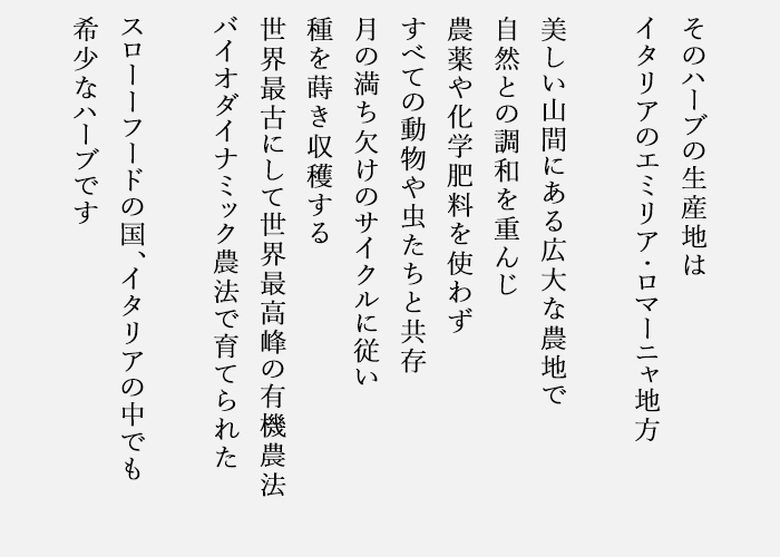 イタリア・サルディーニャの海と清涼なハーブが響き合う、気品あるブレンド