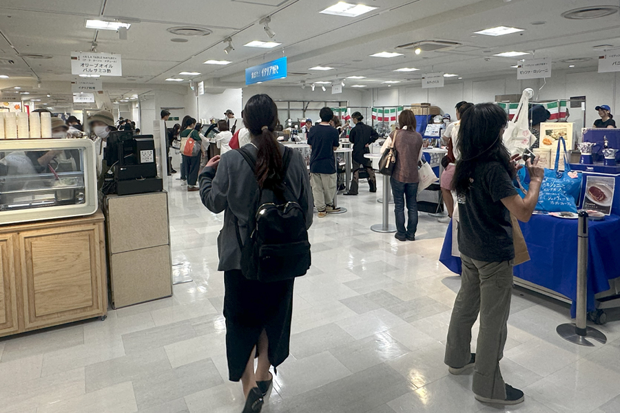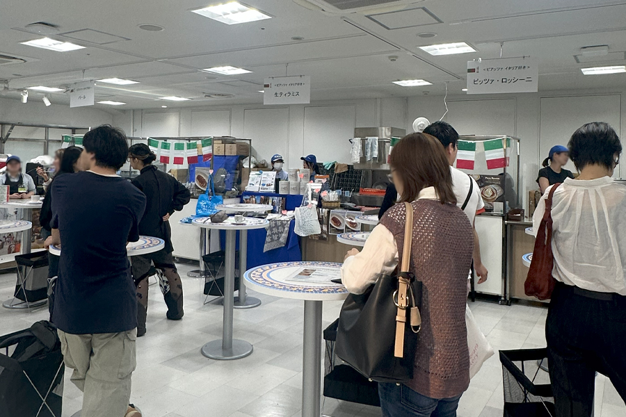 イタリア食品の展示だけでなく、立ち飲み食べよスペースまでついており、その場でイタリアを楽しむことができるスペースまで用意されていました。