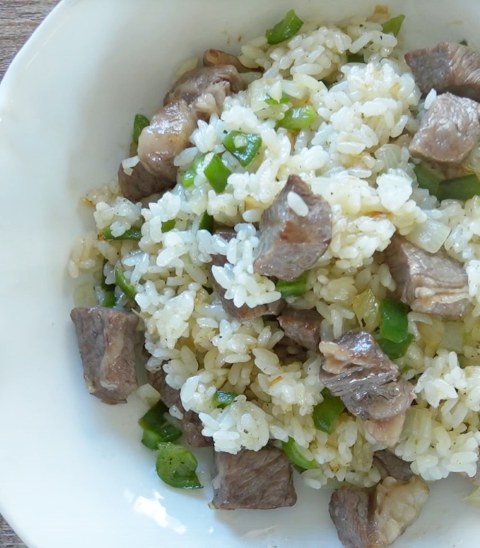 5.野菜に油が馴染んだら、あたたかいごはんを入れて炒め合わせる