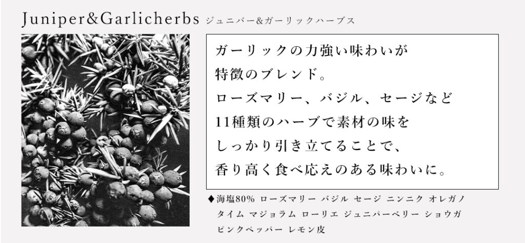 1.豚かたまり肉の全面にJuniper&Garlic herbsをしっかりすりこむ。